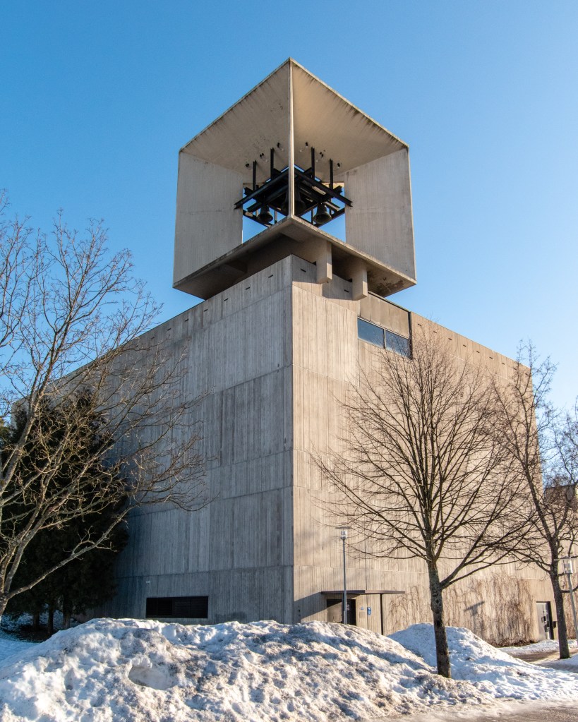Paul-Gerhardt-Kirche was built on the foundations of an older church that was destroyed during the war. It’s triangular shape is reflected in every aspect on the building.