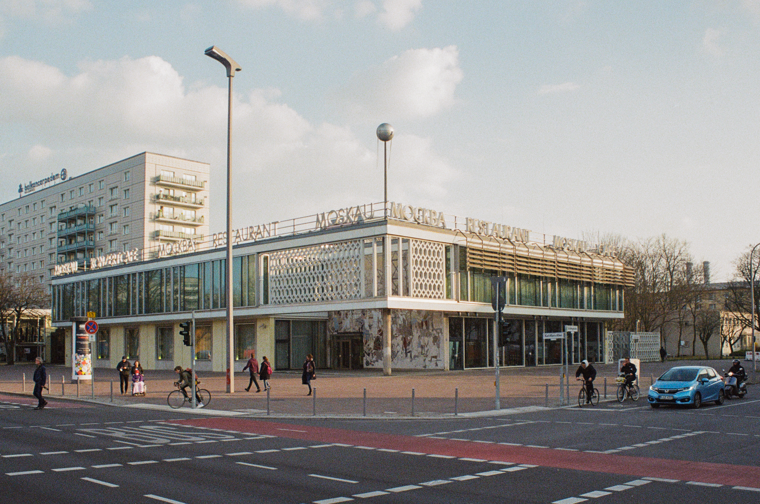 The Coca-Cola sign was added to the top of the building after German Reunification.
